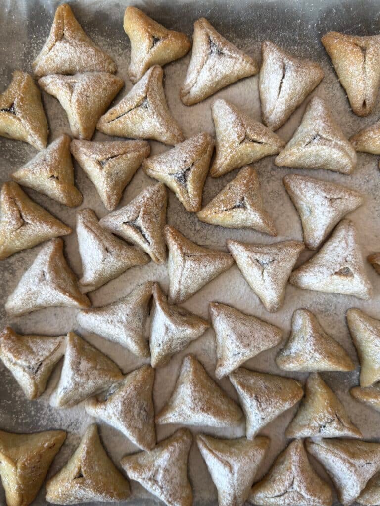 מצננים את האוזני המן ומפזרים מעל אבקת סוכר.