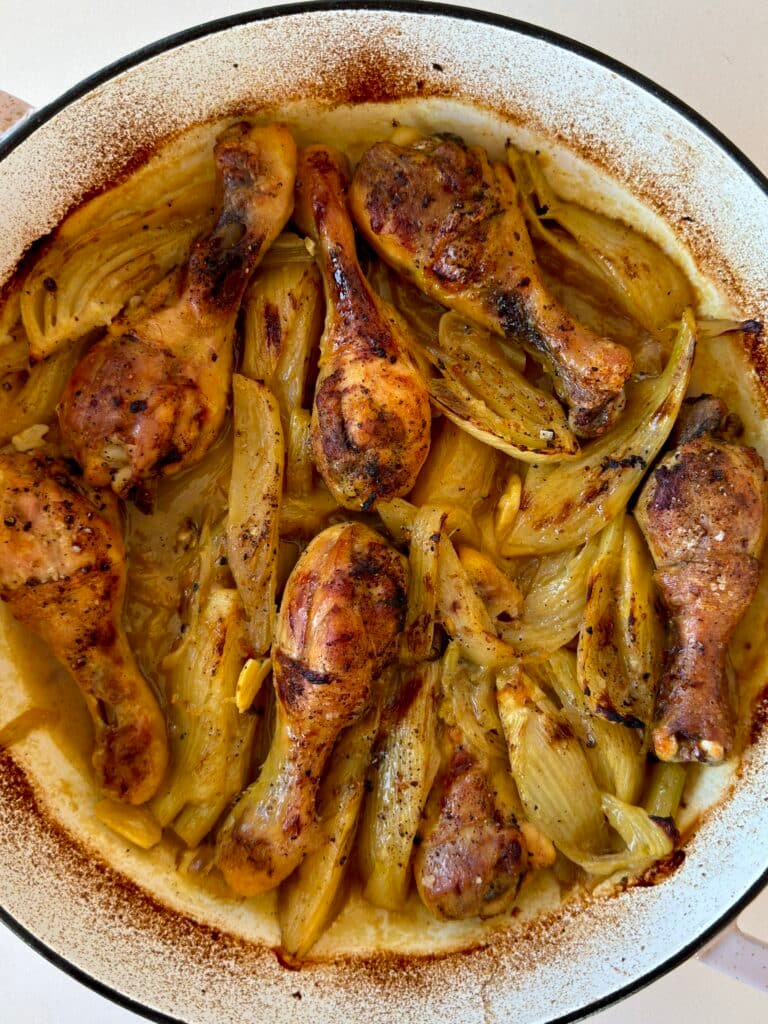 בינתיים נסדר את העוף בסיר ונצרוב עד שזהוב משני הצדדים.